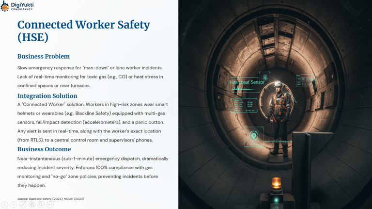 Protect your people and ensure full compliance in high-risk environments. Implementation of Real-Time Locating Systems (RTLS) in remote mine sites and high-heat plant floors. We deploy smart wearables for 'man-down' detection, heat stress monitoring near smelters, and real-time gas/environment alerts
